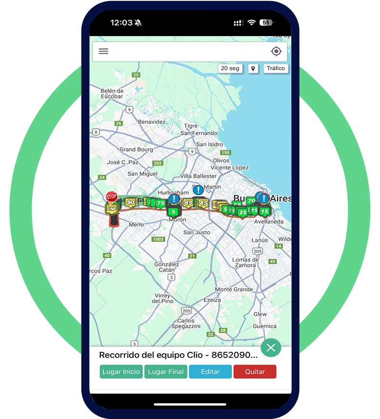Con iTrack, accedé desde nuestra plataforma web y app móvil para visualizar en tiempo real la ubicación exacta de tus vehículos y controlar su paso por los puntos de control, anticipando demoras o adelantamientos